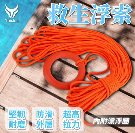 救生浮索 【規格資訊】 ▪ 繩長:30米 ▪ 直徑:8 mm ▪ 安全負荷:100 kg ▪ 破壞荷重:500 kg ▪ 配件:附一個浮環(手環) 線上購買 【產品特色】 ▪ 外層強化防滑:抓握穩定不打滑,操作更安全 ▪ 合股+雙編織結構:高拉力耐磨耐用,救援更可靠 ▪ 高浮力設計:能穩定浮於水面,提升救援效率 ▪ 亮眼橘色繩體:遠距離可視性佳,緊急時刻更顯眼 色澤呈現會因3C產品的品牌,與螢幕彩度設定皆會有些許不同,照片呈現些微色差都屬正常
